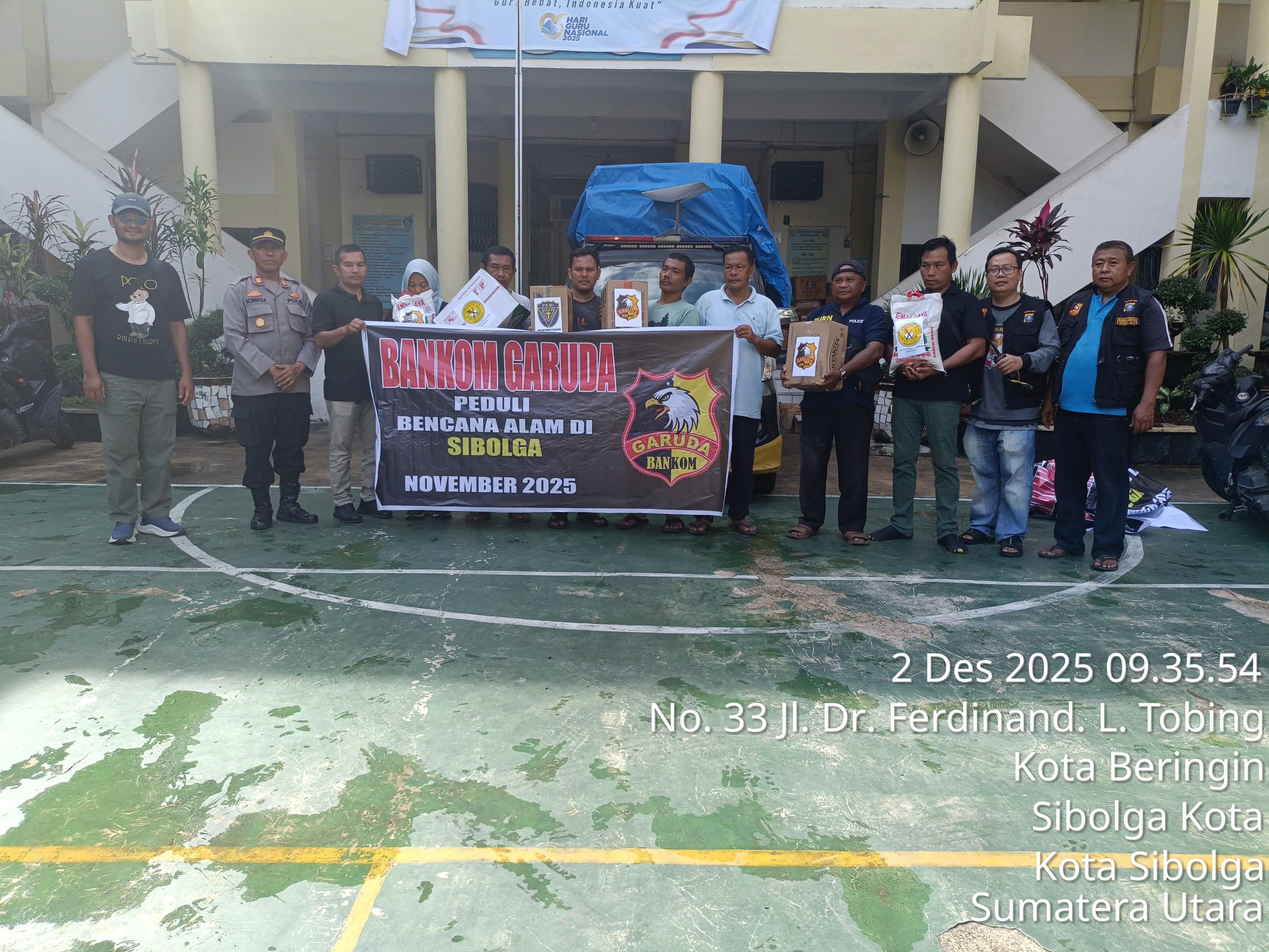 Tim Bankom Garuda beserta Garuda 1 Simalungun Bambang berangkat pada 1 Desember 2025 pukul 13.00 WIB dan tiba di Sibolga pada 2 Desember dini hari pukul 02.00 WIB. Setibanya di lokasi, rombongan disambut hangat oleh Kapolres Sibolga, AKBP Eddy Inganta, S.H., S.I.K., M.H., yang turut memberikan dukungan penuh terhadap penyaluran bantuan.