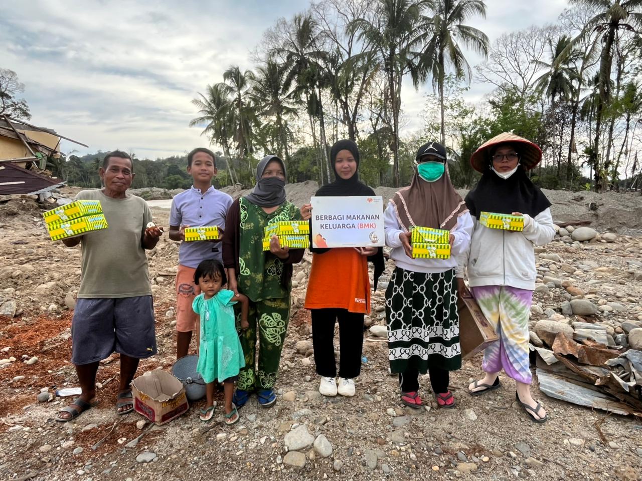 Sebanyak 450 kotak makanan dibagikan secara langsung kepada masyarakat yang membutuhkan di empat desa tersebut, dengan prioritas kepada keluarga terdampak dan kelompok rentan.